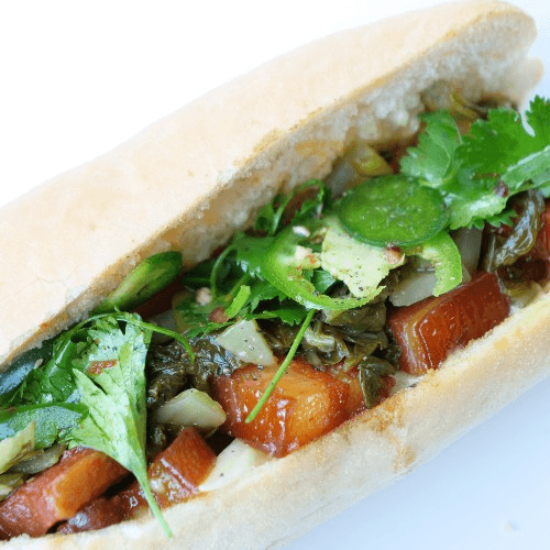 ***NEW MENU ITEM*** Iconic Northern Vietnamese style must try banh mi!*** Hanoi honey glazed bun cha pork patties with pickled cabbage carrots, cilantro, jalapenos, sprinkle of crushed peanuts.